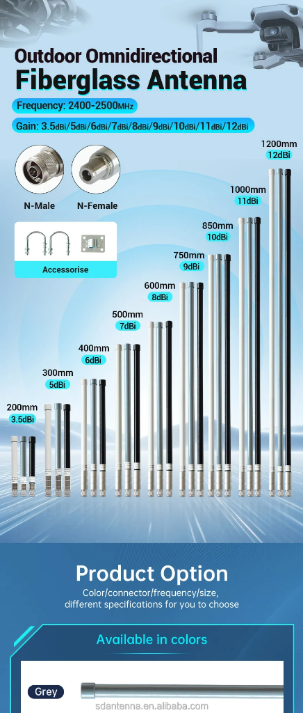 Outdoor Waterproof 2.4G OmniDirectional Fiberglass Antenna
