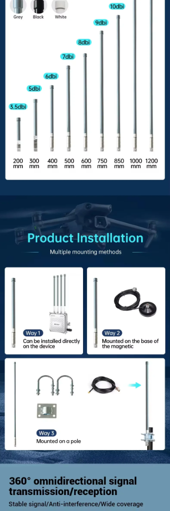 applications (vehicles, drones). * Anti-Interference:Optimized polarization (vertical/horizontal) for signal stability. |
