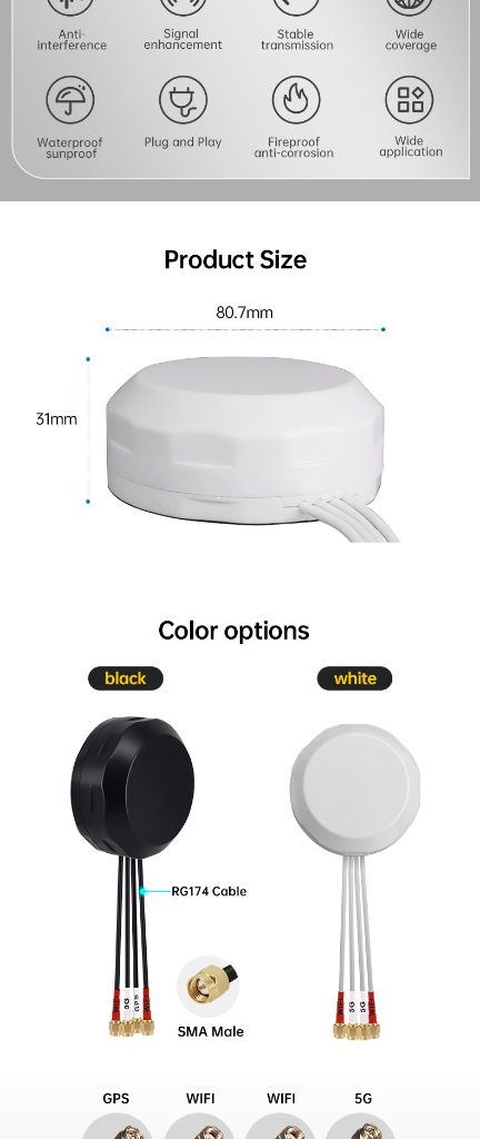4 in 1 Omnidirectional IP67 Waterproof Outdoor Adhesive Combo Antenna WIFI GPS 4G LTE 5G Puck Combination Antenna