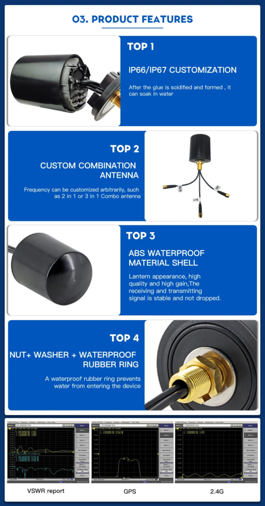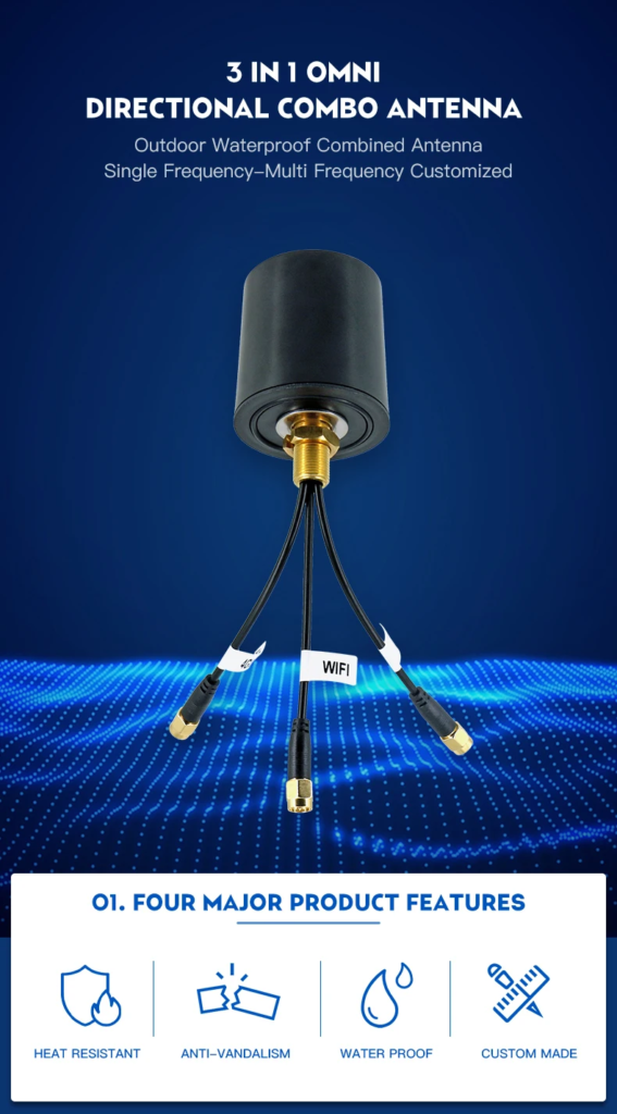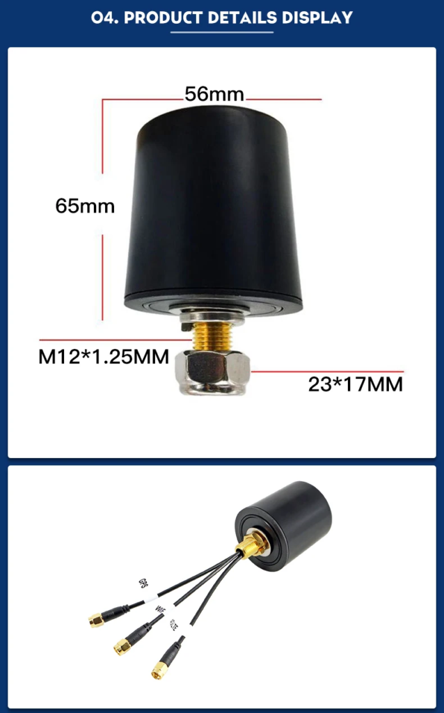 High Gain Waterproof Screw Mount Omnidirectional Outdoor 3 in 1 GPS + Wifi +GSM 3G 4G LTE 5G Combined Combo Antenna