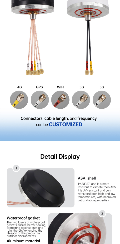 Waterproof Outdoor Low Profile 5 in 1 Omnidirectional Screw Mount Combo GPS WIFI 4G LTE MIMO 5G Puck Combination Antenna