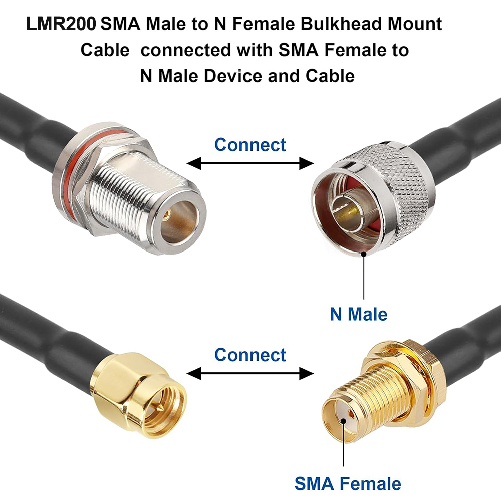 LMR200 RF Coaxial Cable N Type Female to SMA Male Low Loss WiFi Antenna Extension RF Cable Assembly