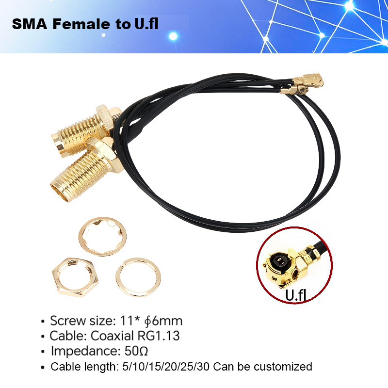 1.13 mm Pigtail Cable With Waterproof SMA Female Bulkhead and ipx/ufl connector